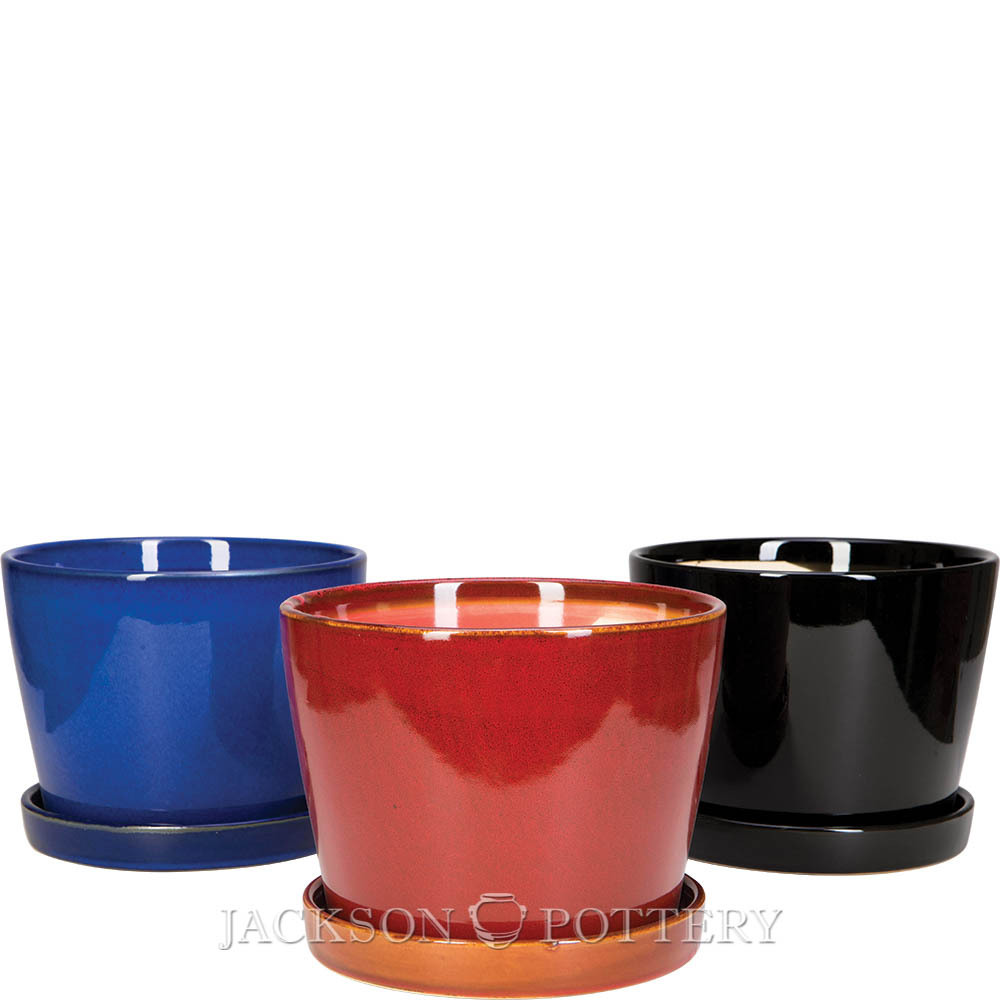 8 in. Tapered Cylinder w/Saucer Mixed Case - 2 of Ea Color Red/Black/Blue
