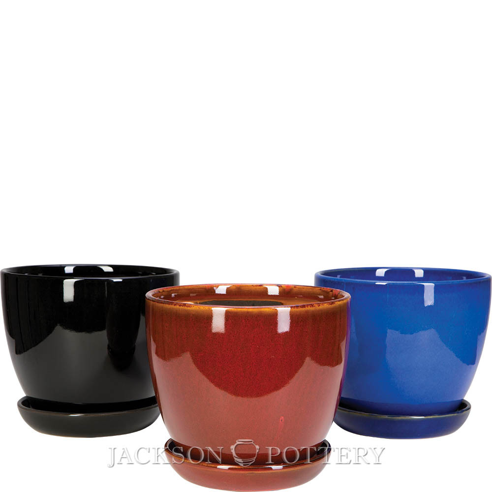 7 in. Bell Pot w/Saucer Mixed Case - 2 of Ea Color Red/Black/Blue