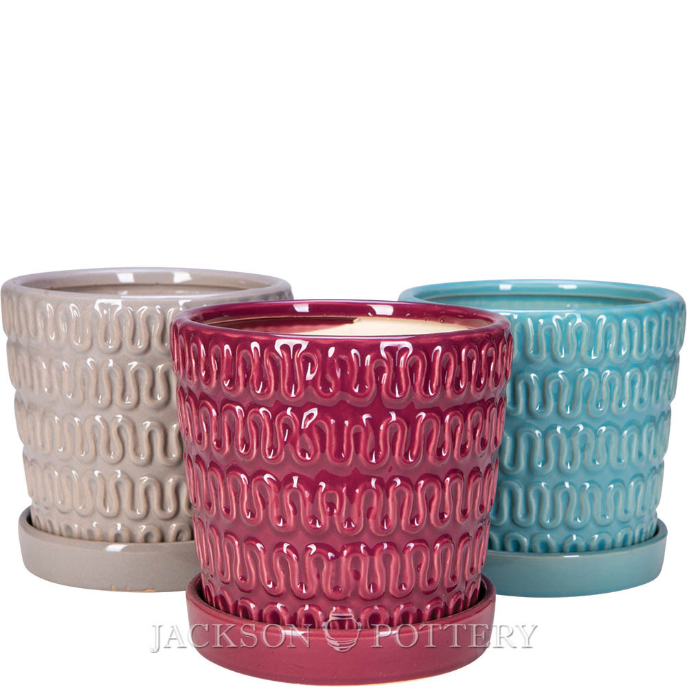 6 in. Wave Pot w/ Saucer - Mixed Case, 6 pcs