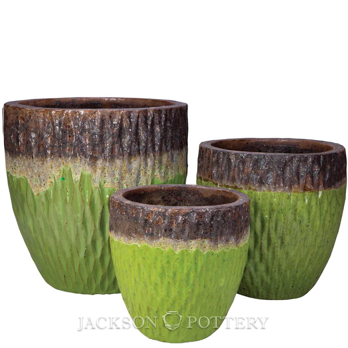 Rain Pot Set of 3 A,B,C - Volcanic Rust over Avocado